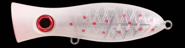 Le Cherry est un popper qui, de part la concavité de sa bouche, produit des gerbes d’eau spectaculaires. Le rapport poids taille est surement l’un des meilleurs du marché. Les distances atteintes avec le Cherry sont exceptionnelles. Facile à travailler, ne décrochant que très peu, même par forte houle, il est également ultra-résistant avec son armature traversante et saura vous accompagner dans vos pêches des très gros prédateurs.
