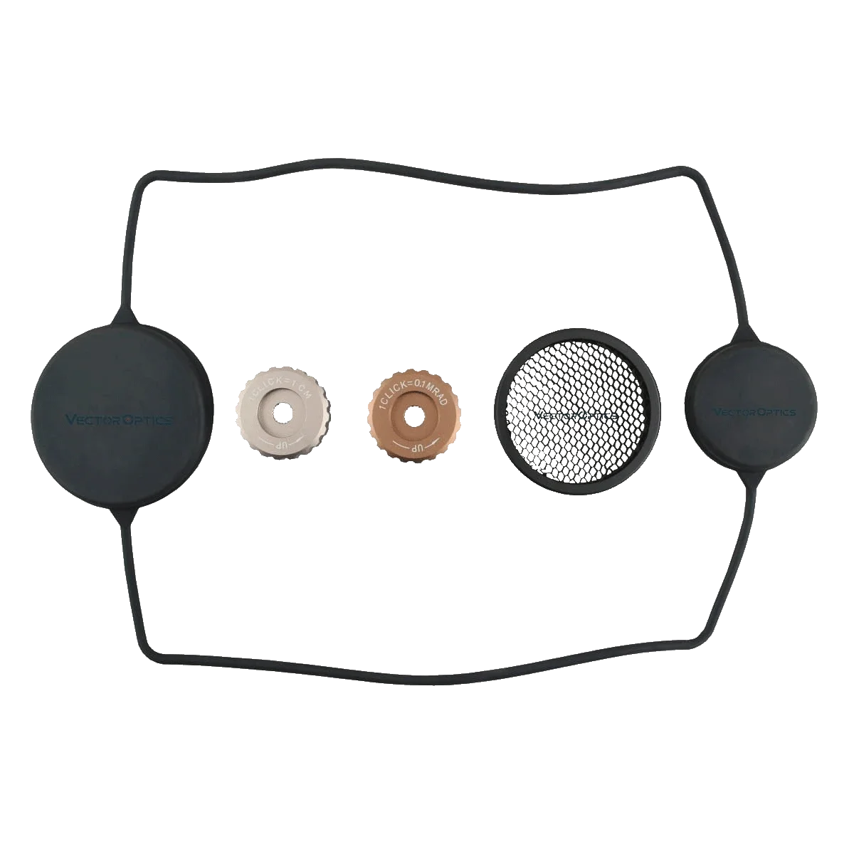 Une paire d'anneaux de visée Picatinny de 30 mm, d'un chiffon de nettoyage, d'instructions, d'un capuchon d'objectif, d'un pare-soleil en nid d'abeille, etc.