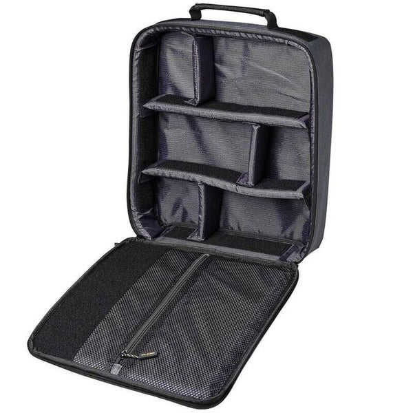 L'organiseur est doté d'un compartiment zippé en filet, d'un panneau interne en velcro et d'un système d'inserts modulaires permettant d'adapter l'intérieur de la poche à vos besoins. Une poignée de transport permet de porter l'organiseur confortablement.