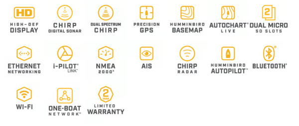 Comme tous les modèles HELIX G4N, le HELIX 9 inclut des fonctionnalités standard telles que AutoChart Live, Wi-Fi et NMEA 2000®, en en plus des réseaux Bluetooth® et Ethernet pour la compatibilité avec la famille de produits One-Boat Network ™ de Humminbird, Minn Kota et Cannon.