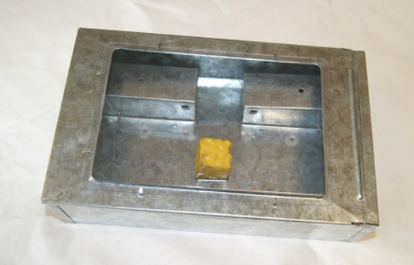 Boîte qui permet d'attraper plusieurs souris sans appât. Livrée avec un appât artificiel, cette boîte est idéale pour capturer plusieurs individus à la fois. Le piège se place le long d'un mur. Les souris, attirées par l'odeur de l'appât factice vont entrer dans la boîte sans pouvoir en ressortir.
