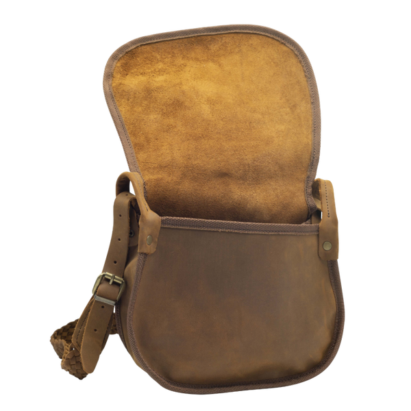 Sac d'une capacité d'environ 50 cartouches de calibre 12, fabriqué en cuir pleine fleur. Bretelle en cuir tressé réglable en longeur pour s'adapter à toutes les morphologies.