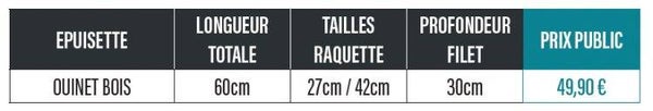 – L’Epuisette Ouinet bois est équipée d’un filet enduit spécialement conçu pour limiter les frottements et réduire les risques de blessures, garantissant un maximum de respect pour le poisson.